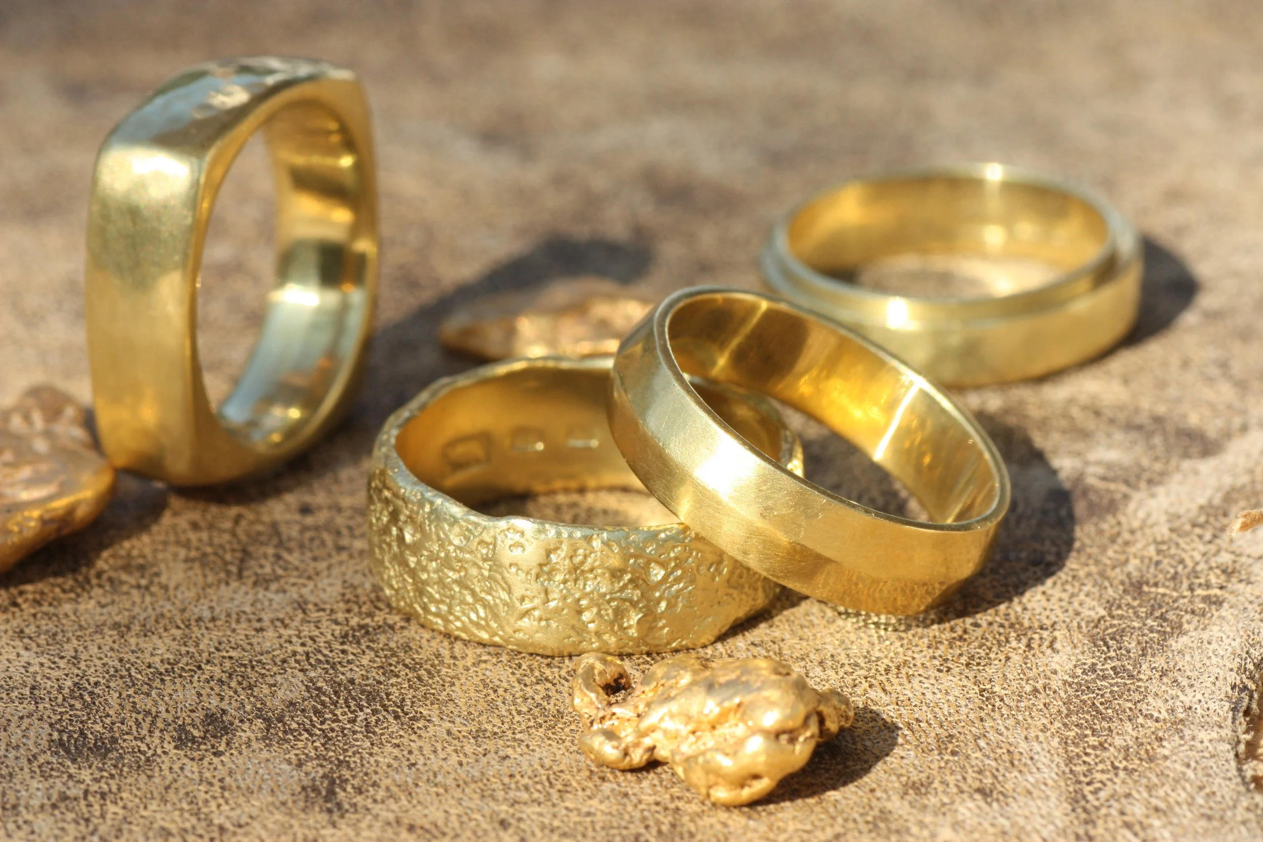 California Gold (our signature collection): 100% mined and crafted in California, higher-karat, rich natural color, ethical sourcing. It’s something truly local and meaningful, and there are 18 standard styles to choose from.