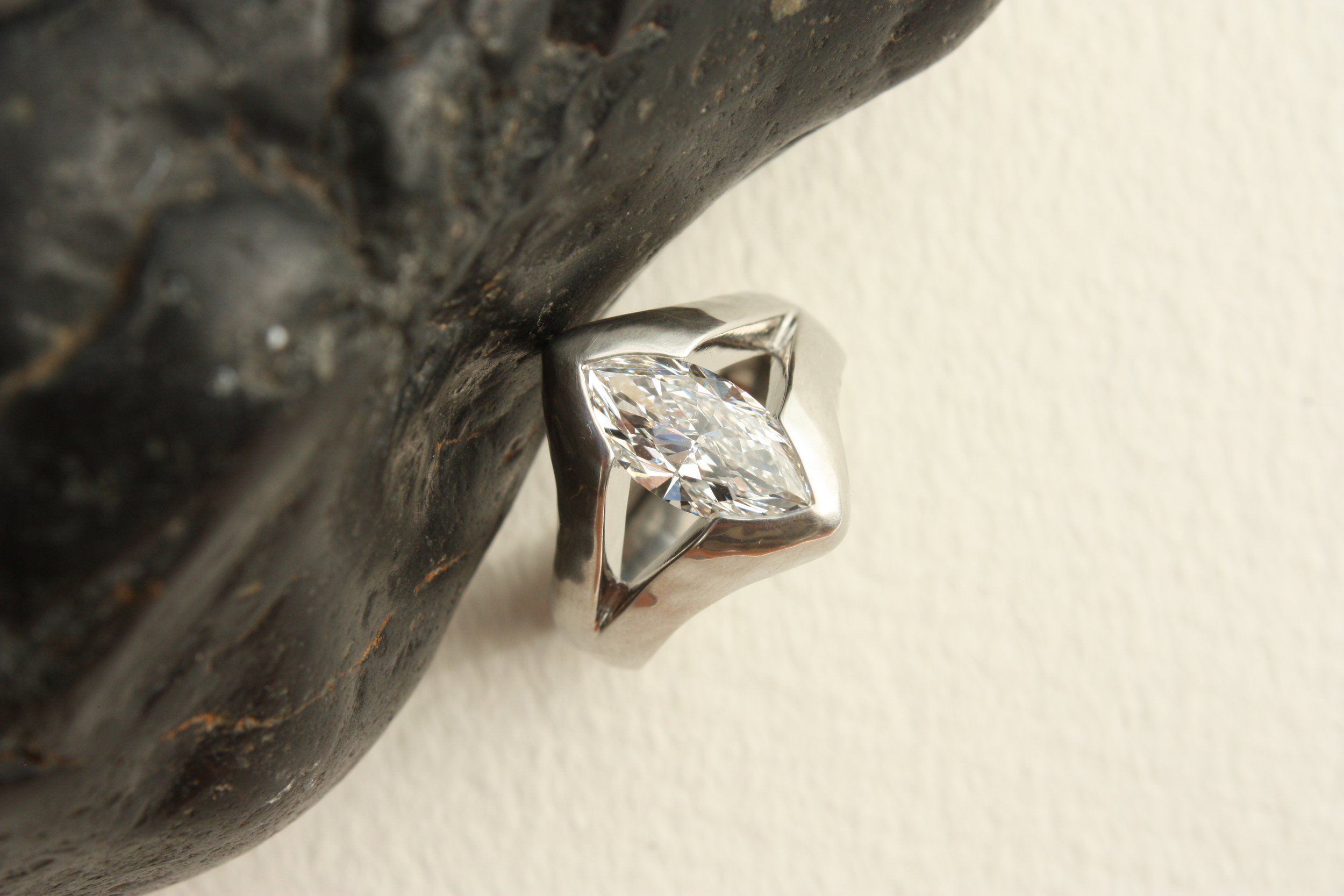 The term "chunky engagement ring" covers a family of styles united by one quality: visual weight. In our designs, the defining features tend to include a wide band, an oversized or architecturally bold setting, and large or elongated center stones that really make the ring itself a piece of art.